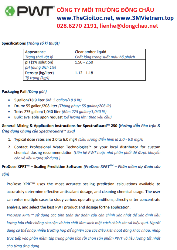 Dung dịch PWT Mỹ SpectraGuard-250 chống cặn màng RO/NF/UF