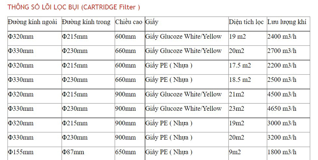 Với Cấu tạo bằng các nếp xếp giúp cho diện tích lọc của lọc được nhiều, tiết kiệm điện năng, Tiết kiệm khí nén, Tiết kiểm thời gian thay thế vệ sinh, tháo lắp dễ dàng